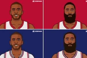 这样一来,哈登和保罗再度联手!数据媒体StatMuse列出了两人上次合作时的数据: