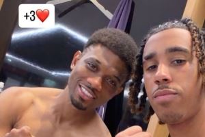 约罗也在赛后通过社媒晒出自己和阿玛德在赛后更衣室赤裸上半身的自拍照,两人看起来都相当开心,约罗还配文道:“+3分”。